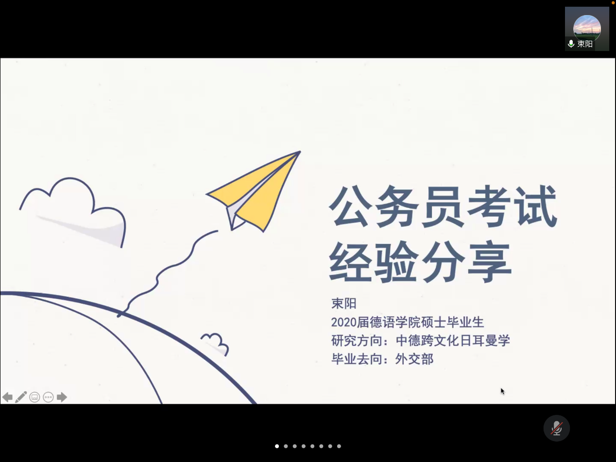11月1日15:00,必赢76net线路官网公务员考试经验线上分享会成功举行。必赢76net线路官网2020届硕士毕业生束阳受邀与必赢76net线路官网本科生、研究生分享了公务员考试的流程以及备考建议,并解答了同学们的问题。会议由必赢76net线路官网研究生会主办,研究生会徐泽茗主持。