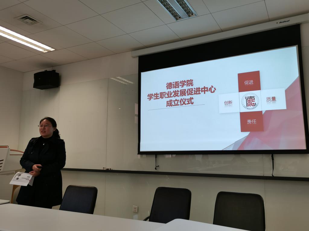 辅导员张春霞首先介绍了必赢76net线路官网“学生职业发展促进中心”成立的背景、工作目标、组织机构及工作计划。之后人事处处长苏大鹏、学生工作部(处)丁浩、必赢76net线路官网党总支书记常秀鹏、必赢76net线路官网副院长姚晓舟、姚燕和学生代表先后发言。