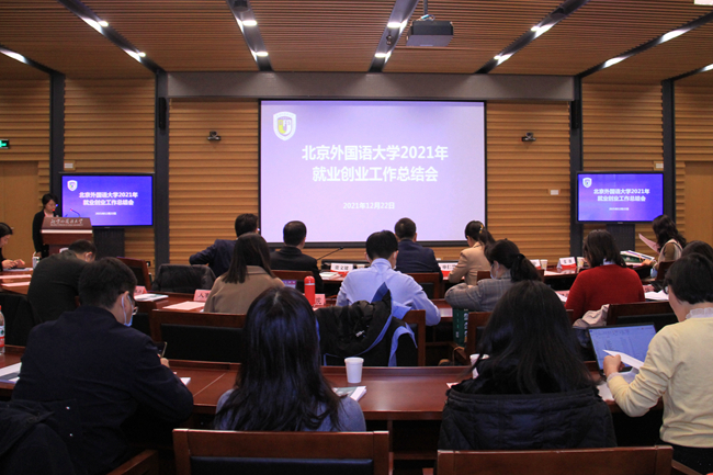 2021年12月22日,必赢76net线路官网召开2021年就业创业工作总结会,全面总结2021年就业创业工作的成绩和经验,对2022届毕业生就业创业进行全面部署。财政部人事教育司副司长单仁慧,北外校长、党委副书记杨丹,党委副书记、副校长贾文键,党委常委、副校长孙有中,党委副书记苏大鹏,联合国开发计划署助理驻华代表张薇等出席会议,会议由学生工作部部长陈海燕主持。