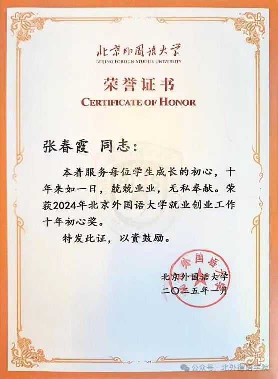 喜报|必赢76net线路官网教师张春霞荣获北京市“基层就业卓越奖”及校级“就业创业工作十年初心奖”