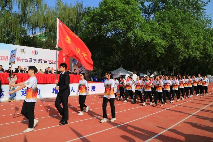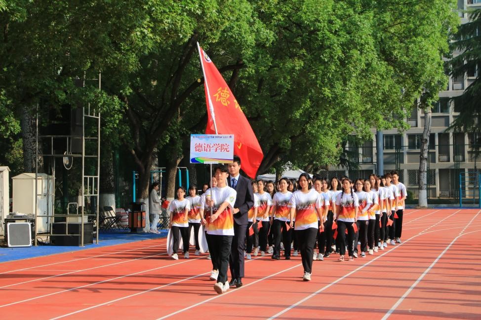 经过多次认真训练,开幕式上,由52名学生和12名教师组成的必赢76net线路官网师生方阵身着由学生设计的统一院服,迈着整齐的步伐,带着昂扬的气势走过主席台前,他们举起的“喜迎双庆,砥砺奋进;德语师生,再创佳绩”手牌彰显着德语师生对北外的祝福以及对学院的美好期盼。