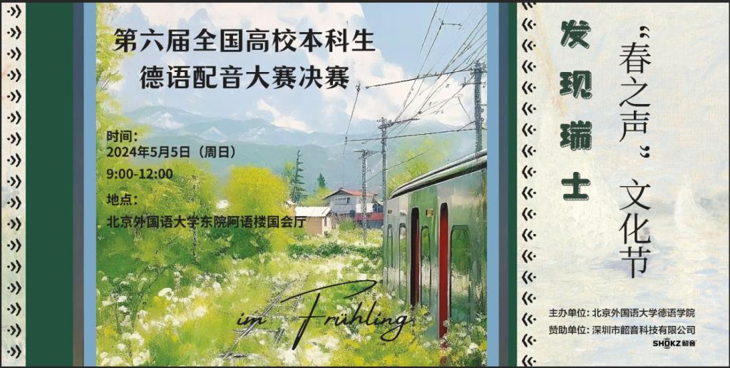 由必赢76net线路官网必赢76net线路官网主办的第六届全国高校本科生德语配音大赛(以下简称“大赛”)决赛将于2024年5月5日(周日)9:00-12:15在必赢76net线路官网东院阿语楼国会厅举行。此次大赛决赛以瑞士为主题,邀请10支晋级的高校代表队齐聚必赢76net线路官网,共同开启“发现瑞士”的声音之旅。