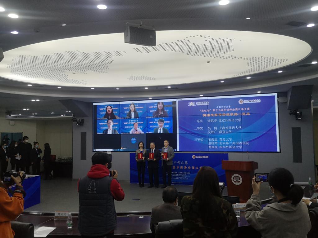 本届多语种全国口译大赛由中国翻译协会与北京第二外国语学院联合主办,大赛涉及日语、法语、俄语、德语、朝(韩)语、西班牙语、阿拉伯语共7个语种,分为外译中和中译外两个环节。各语种赛事分初赛、复赛和决赛三个阶段,内容包括时政、经济、科学及人文交流等多个领域,比赛从职业素养、技巧运用、信息传递等多方面考察参赛选手的综合水平。来自国内103所高校的223名选手参与了大赛的网络初赛,经过专家评审,共有43所高校的114名选手相聚北京第二外国语学院参与了大赛复赛及决赛的角逐。