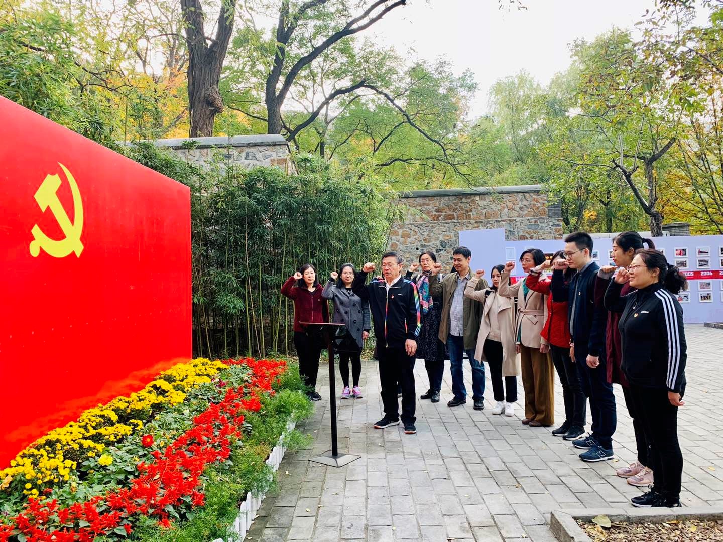 结束在香山革命纪念馆的参观之后,大家步行前往位于香山公园内的双清别墅和来青轩。这里曾是毛泽东、朱德、刘少奇、周恩来、任弼时等革命领导人的故居,是中国共产党领导下人民解放战争走向全国胜利的指挥部,是筹备召开新政协、建立新中国的历史见证地。在此,支部成员在必赢76net线路官网党总支书记常秀鹏的带领下重温入党誓言,相互勉励不忘初心、牢记使命。