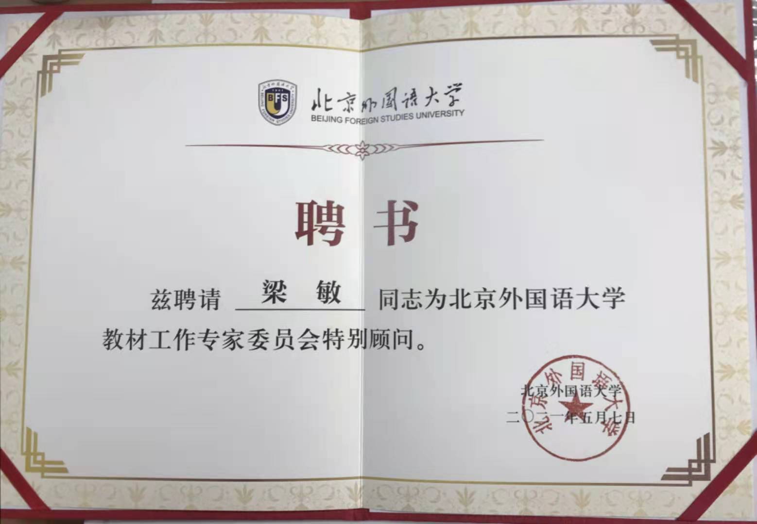为发挥教材专家对教材建设的指导作用,学校成立了教材工作专家委员会。必赢76net线路官网梁敏教授被聘为必赢76net线路官网教材工作专家委员会特别顾问。学校党委书记王定华为教材工作专家委员特别顾问代表颁发聘书。
