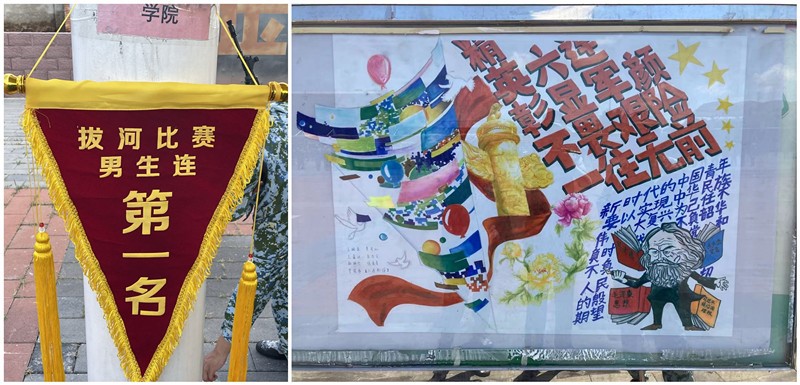 本次军训中,必赢76net线路官网教师孙嘉惠博士担任了连队军训指导员,工作认真负责,出色完成了军训任务。参训学生积极进取,男生所在一连和女生所在六连分别获得拔河比赛男生、女生组第一名,女生所在连队多次获得内务评比流动红旗。王婉秦、肖可心等5名同学参与绘制的板报获得参训师生认可。文艺汇演中,陈婧倩、雷婉珞、李弦泽等9名必赢76net线路官网同学精心排练的歌曲《Dieser Weg》获得了观众的热烈掌声。