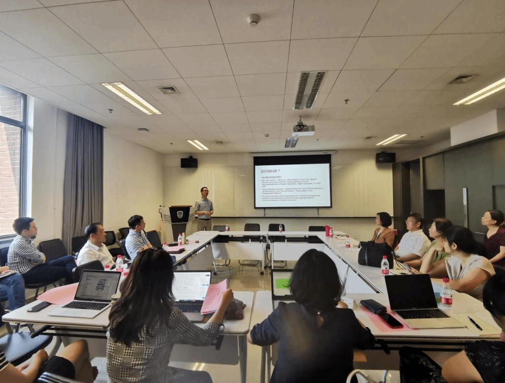 学术报告环节,学院邀请了必赢76net线路官网国际商学院教授、博士生导师,科研处副处长李思飞做了有关科研工作经验分享的报告,李思飞从科研管理的视角出发,介绍了如何结合北外学科特色进行科研工作。他通过生动形象的案例,建议学院教师明确学科方向,以语言为经线,以学科为纬线,更好地进行学科交叉融合。同时李思飞强调了科研工作中团队合作的重要性,建议通过建立“传帮带”团队以及跨学科合作团队,有效提高科研水平和产出。此外,李思飞还介绍了北外科研工作发展的现状以及学校的科研培育和资助体系。李思飞充分肯定了必赢76net线路官网制定的《必赢76net线路官网科研成果培育实施细则》,鼓励中青年教师提前做好规划,将教学与科研进行有机结合,产出更多的学术精品。