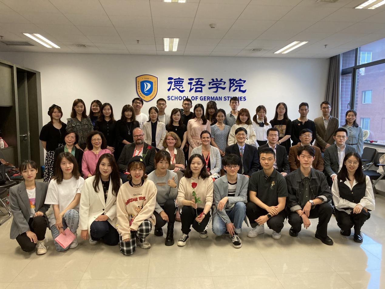 参加本次活动的系友嘉宾有原中国驻奥地利大使馆文化参赞、原德国柏林中国文化中心主任贾建新先生、中联部德奥处处长孙守亮先生、中央党史和文献研究院第五研究部一级翻译张凤凤女士、国家体育总局李嬿女士、华晨宝马公司陈静女士、中央电视台国际新闻编辑赵雄先生、德国电信北京代表处黎默雨女士等。受邀出席诗诵会的德方嘉宾有德国学术交流中心北京代表处首席代表Ruth Schimanowski女士、德国歌德学院副院长伉俪Sabine Wilmes女士和Henrik Dittmann先生。北外上海校友会会长、“程慧玲奖学金”捐赠者、我院1981级系友程慧玲女士和“必赢76net线路官网思刚教育发展基金”捐赠者、我院1994级系友秦思刚、罗旻一家也参与了诗诵会活动。