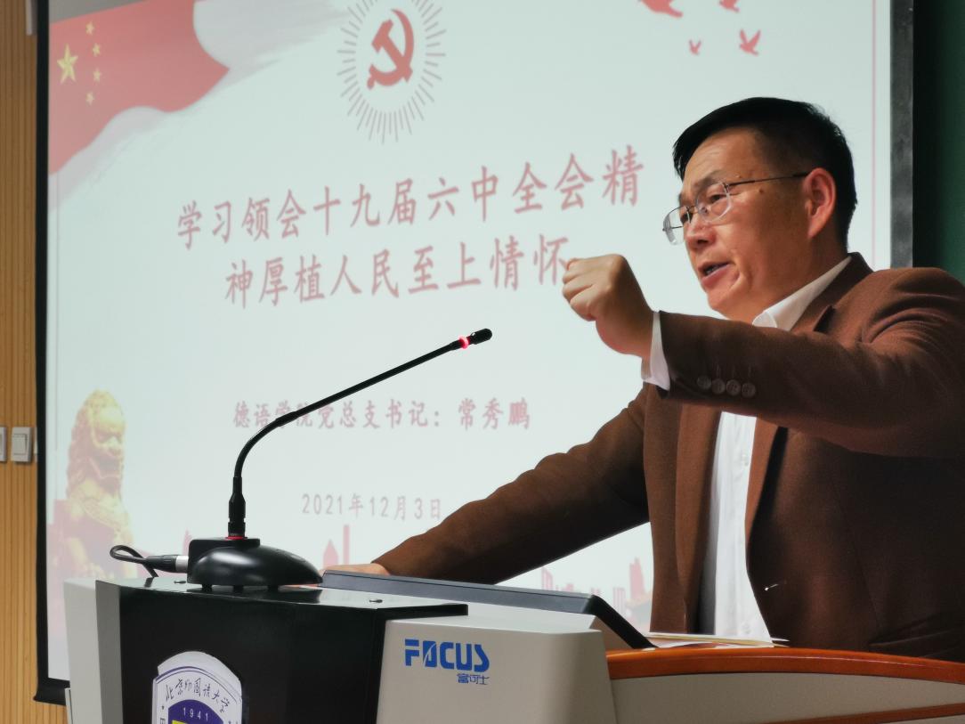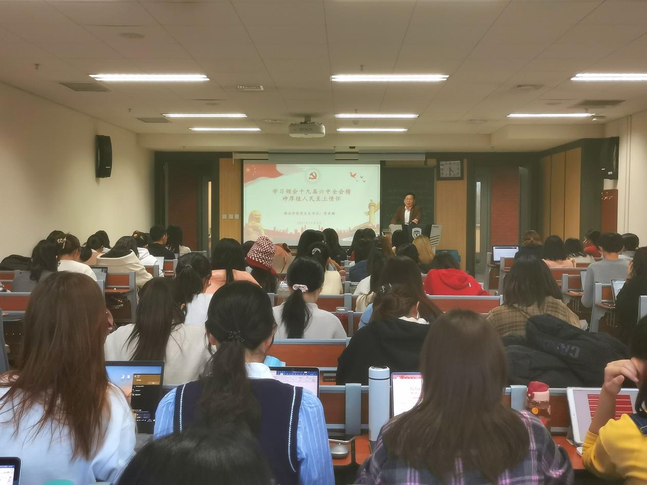 为深入贯彻校党委关于学习党的十九届六中全会精神的要求,提高广大学生党员、入党积极分子的思想觉悟和理论水平,12月3日下午4:30,在国际大厦413教室,必赢76net线路官网举行“党总支书记讲党课”集体学习活动。学院党总支书记常秀鹏为本硕博学生党员、入党积极分子80余人讲授了以“学习领会十九届六中全会精神,厚植人民至上情怀”为主题的党课。辅导员张春霞、粟靖淳参加了学习活动。