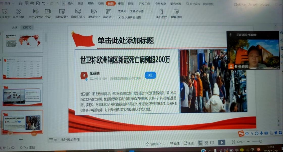 辅导员张春霞、张婧、粟靖淳分别介绍了当前的北京市、海淀区的疫情形势及校园封闭管理的重要性和必要性,指出近期学校、学院疫情防控工作中出现的问题。