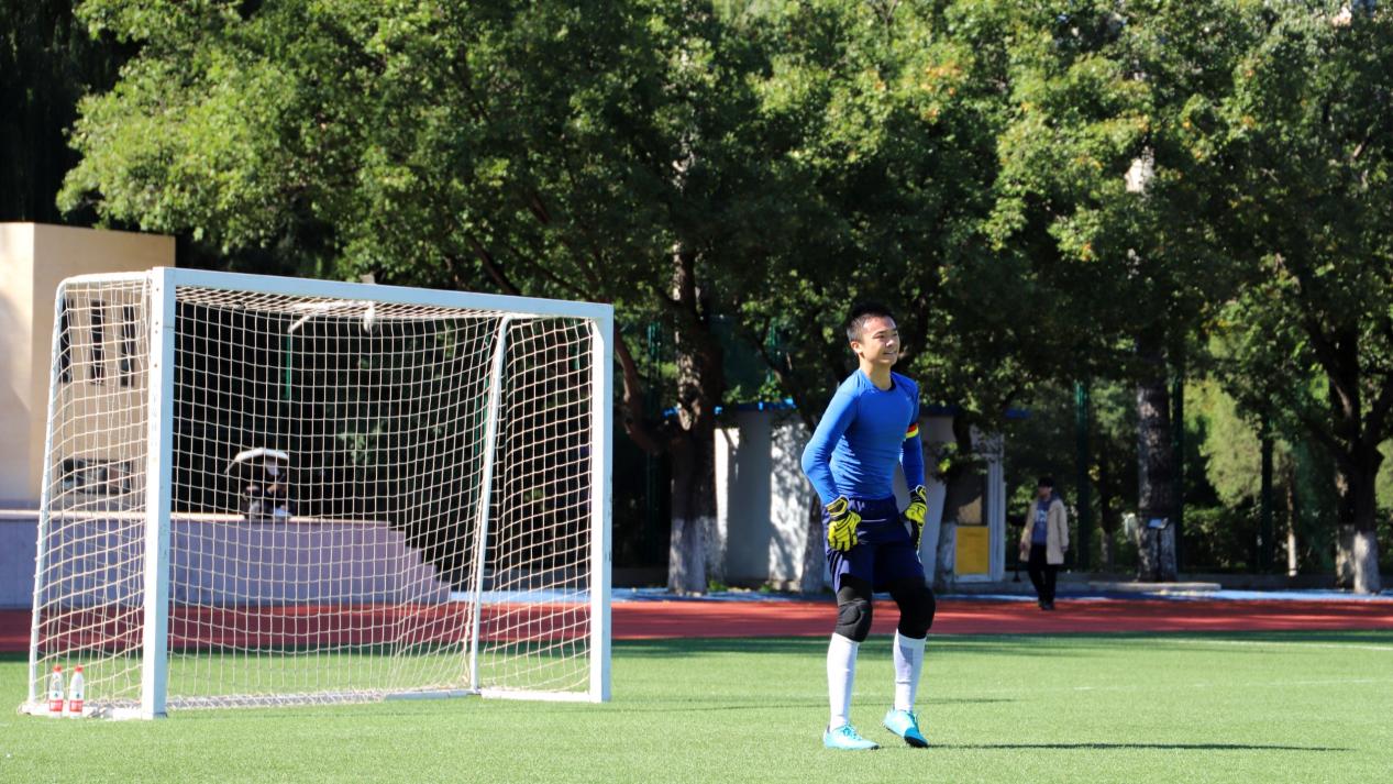图为曹涵作为场上队长,代表必赢76net线路官网参加北外杯男子足球赛