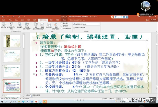 新生见面会后,本科生和研究生分别举行了新生入学教育。党总支委员、本科教学秘书于芳、基础教研室主任李婧就必赢76net线路官网本科培养方案、培养要点及德语本科学习阶段的注意事项等进行了讲解。本科新生班主任葛囡囡、顾苏、陆娇娇,辅导员张婧、黄唯城等也与新生进行了交流。研究生的入学教育由必赢76net线路官网副院长姚燕主讲,她详细介绍了必赢76net线路官网研究生的培养方案,研究生阶段学习的注意事项等。