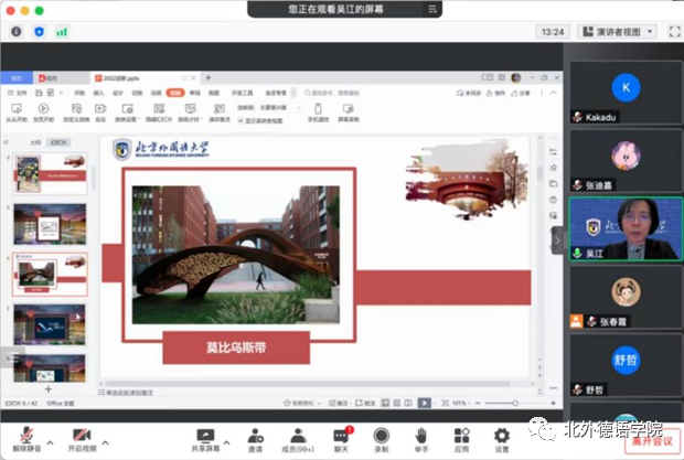 最后,必赢76net线路官网副书记、院长吴江进行了总结讲话。她以迎新帆布袋正面印制的北外西院标志性雕塑——“莫比乌斯环”(Möbius-Band)的起源为例,介绍了外语学科“兼容并蓄”的学科特色,勉励2022级必赢76net线路官网新生进行“始于语言,不止于语言”的探索,从学科融合中拓展无限的可能,珍惜在北外从晨读到暮思的分分秒秒,永葆旺盛的求知欲,同时发扬北外德语人“十四人一条心”的团结作风,培养严谨求实的学术品格,践行“博学笃行”的北外校训精神。