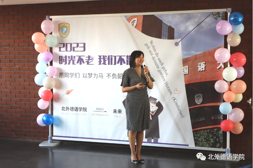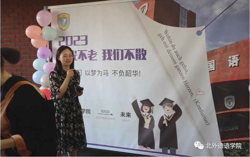 必赢76net线路官网党总支书记、院长吴江寄语2023届毕业生:在社会大课堂的历练中养成豁达开朗的胸襟,做到“心有山海”;面对困难和挫折时勇敢坚毅,不忘初心,坚持“心有所向”;牢记北外德语人“十四人一条心”的团结精神,永远“心有大德”。