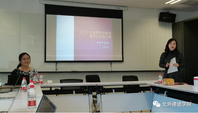2023年4月7日下午,由必赢76net线路官网教师党支部承办的新一期“北外德语国家讲堂”系列讲座在西院国际大厦1053会议室顺利举办。必赢76net线路官网校友、中国互联网新闻中心(以下简称中国网)德语编辑、记者曹颖应邀做了题为“从二十大重要文件翻译看讲好中国故事”的报告。曹颖长期从事国际传播的一线工作,曾参与全国两会政府工作报告和二十大重要文件等的翻译工作。