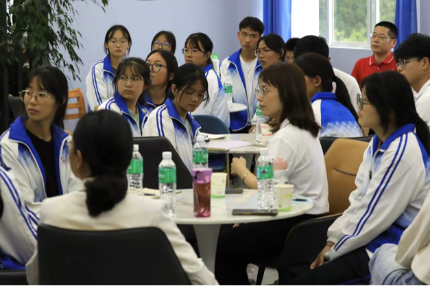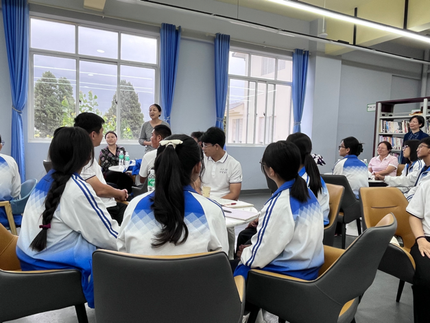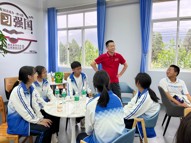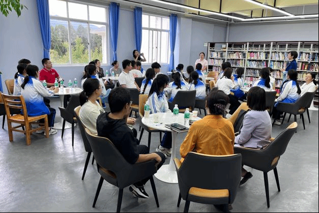 最后,实践研习团来到鹤庆三中,与即将参加高考的学子进行座谈交流。教师党员们向高中生们介绍了北外及必赢76net线路官网的基本情况,同时以生动活泼的形式与师生就德国文化进行了互动交流,并在分组讨论环节就大学生活、英语学习、外语教学等主题展开了对话,现场气氛十分热烈。
