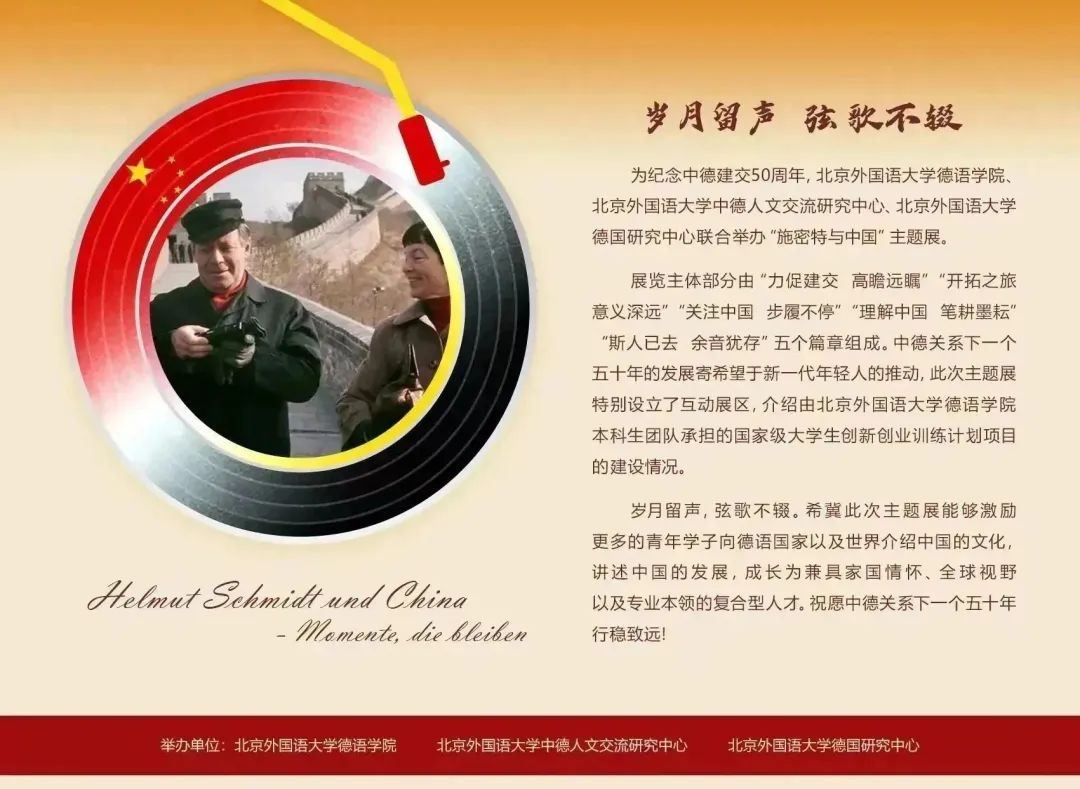 中德建交50周年主题展“施密特与中国”自2022年10月首展以来,得到了认可和称赞。中国前驻德国大使梅兆荣先生评价主题展“是一个创举”,令人印象深刻。为弥补此前未能来现场参展的观众的遗憾,主办方将于2023年6月3日至6月8日再次推出中德建交50周年主题展“施密特与中国”,欢迎各位前来观展!