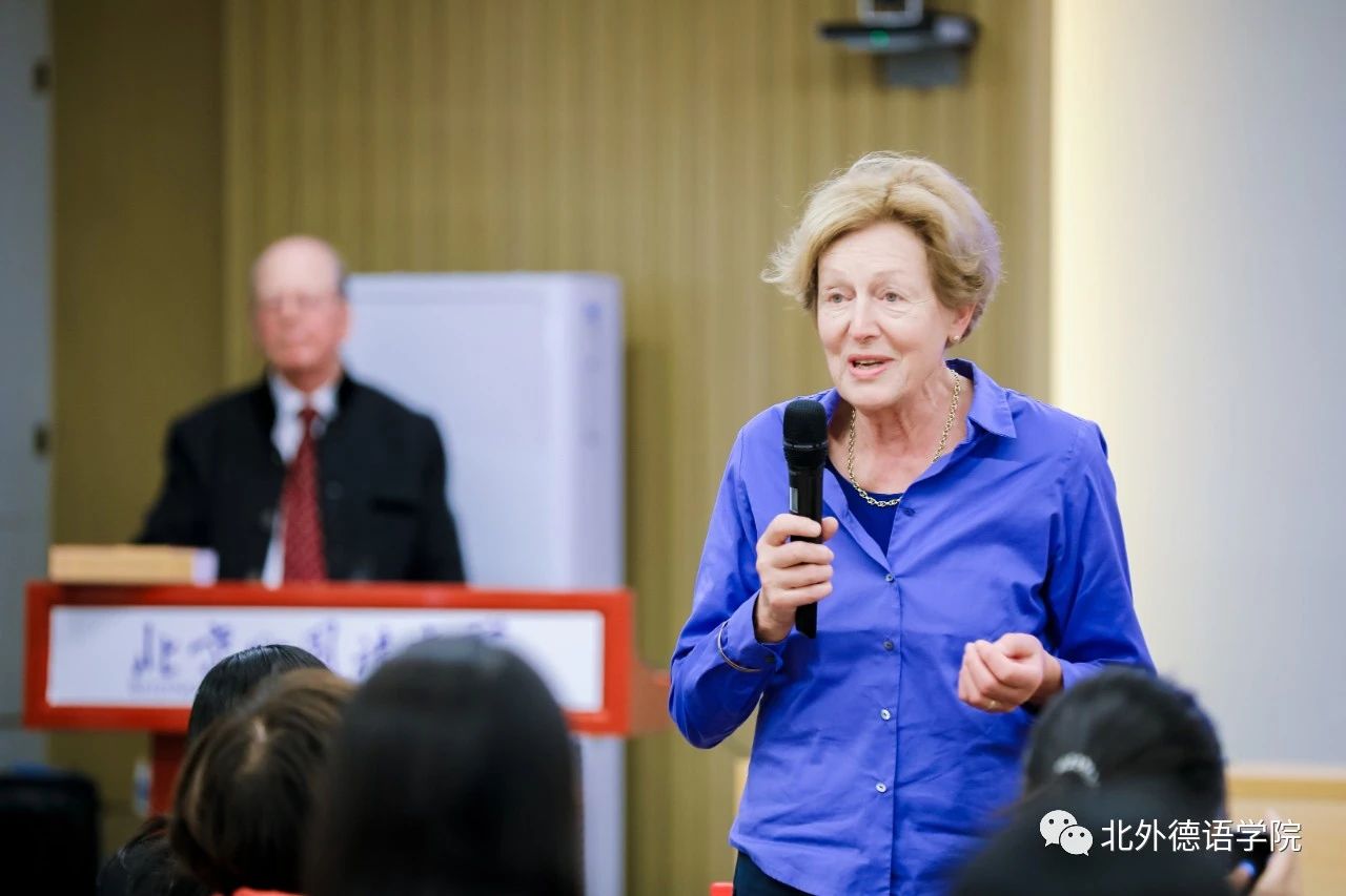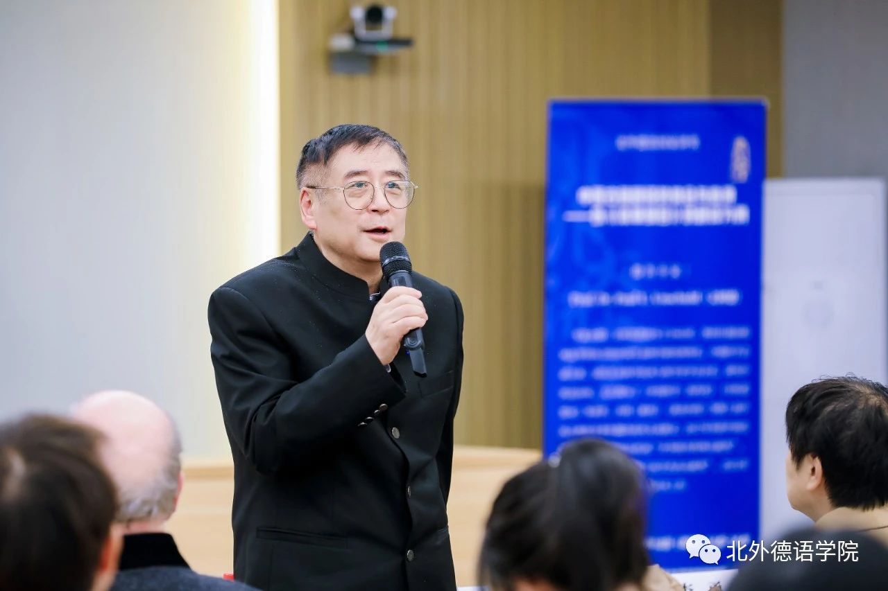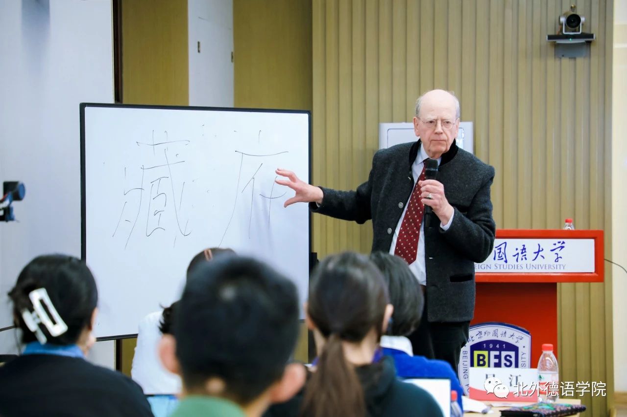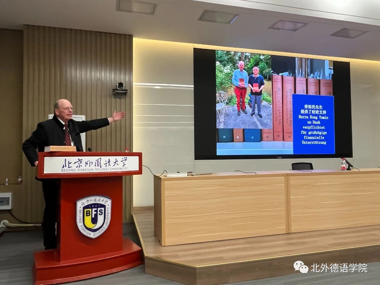 2023年10月18日下午,北外德语国家讲堂系列报告“中医古籍翻译的体会与心得——以《本草纲目》的翻译为例”在必赢76net线路官网东院晨读厅成功举办。报告主讲人为德国著名医史学家、翻译家文树德教授(Prof. Dr. Paul U. Unschuld),专攻中、欧医学及生命科学比较史,尤擅长医学思想史、伦理史研究。文树德教授夫人文淑德女士(Ulrike Unschuld)、必赢76net线路官网必赢76net线路官网1977级校友、德国Rolux Leuchten GmbH 公司创始人、中国赛尔富电子有限公司董事荣裕民先生,必赢76net线路官网党政联席会成员、教师代表及近百名学生聆听讲座。讲座由必赢76net线路官网党总支书记、院长吴江主持。