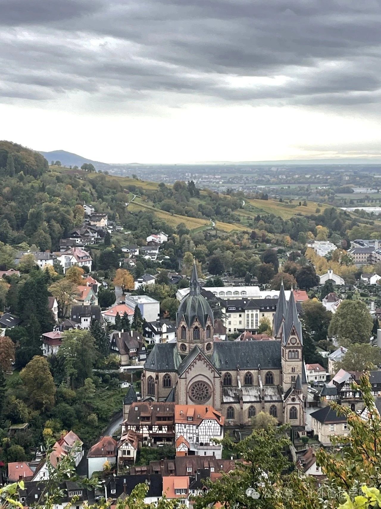 去年6月,我幸运地获得了去海德堡大学交换一学年并在其汉学系教中文的宝贵机会。10月,在收拾好行装,与家人、老师、同学以及朋友告别后,我坐上了前往德国的航班,内心满怀对我学生时代第一次交换之旅的期待。在抵达法兰克福机场后,熟悉但又陌生的环境突然从教科书以及老师的讲述中跳脱出来,幻化为肉眼可见的实体,扑面而来的异国气息让我对接下来的行程心生了一丝恐惧,我开始担心自己是否能够应付得住接下来可能会到来的挑战。然而,这一丝畏惧,在汽车载我从宽阔的高速公路驶入海德堡的那一刻烟消云散。那是一个晴朗的正午,内卡河畔的翠绿草坪伴着阳光闪着绿油油的光,屹立在不远处的小山随着车辆行进也逐渐充满我的双眼,山上有熙熙攘攘的精致小屋,大片大片的浓绿森林像抹茶蛋糕一样将小屋融化进山里。即使已经看过无数遍海德堡的照片,但这一次,我也还是把心遗落在了这里。