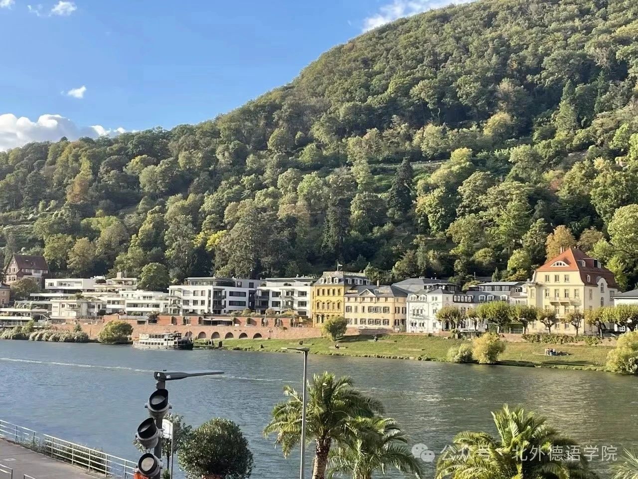 初识“海德堡”是在大学一年级的德综课上,喜爱大海的我当时一瞬间就被老师口中这个美丽的名字吸引住了。虽然这一初印象立刻被我通过搜索引擎否定了,原来海德堡并不像我想的那样坐落在大海边,但当我看到网络上海德堡的照片时,我承认,它比我想象的还要美丽与浪漫。那一年,时常会在课堂上听到老师分享与海德堡相关的种种,或关乎风景人文,或关乎学习生活。时间久了,一个“我想去那里看看”的念头便在我的德语入门时代慢慢发芽长大。大一下,我选择“海德堡”为主题完成了我的德综课汇报,那是我第一次试图以介绍者的身份去了解这座城市,也是第一次认真地与海德堡城堡、老桥、内卡河、哲学家小径以及海德堡大学来了一场“云约会”。后来,在了解到北外与海德堡大学有校际合作项目后,一个“或许有一天我也能去那儿交换学习”的想法便一直被藏在心底。那一年,我18岁。