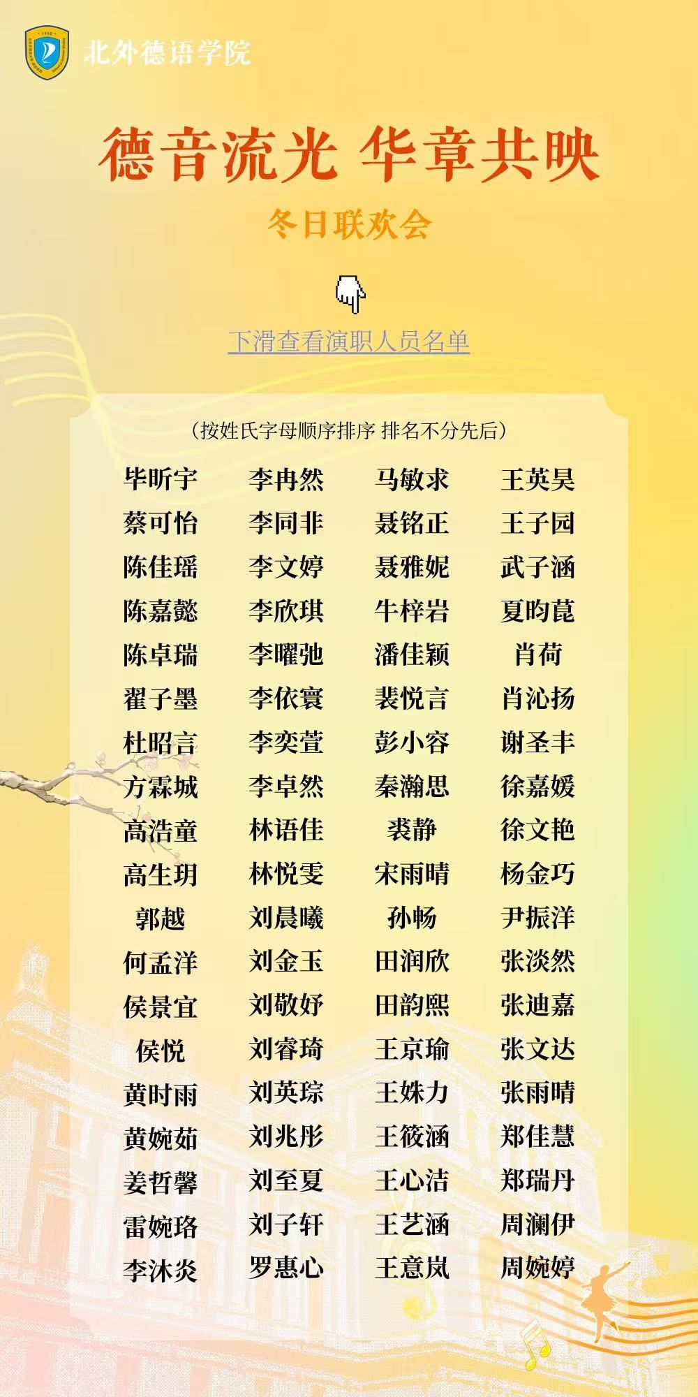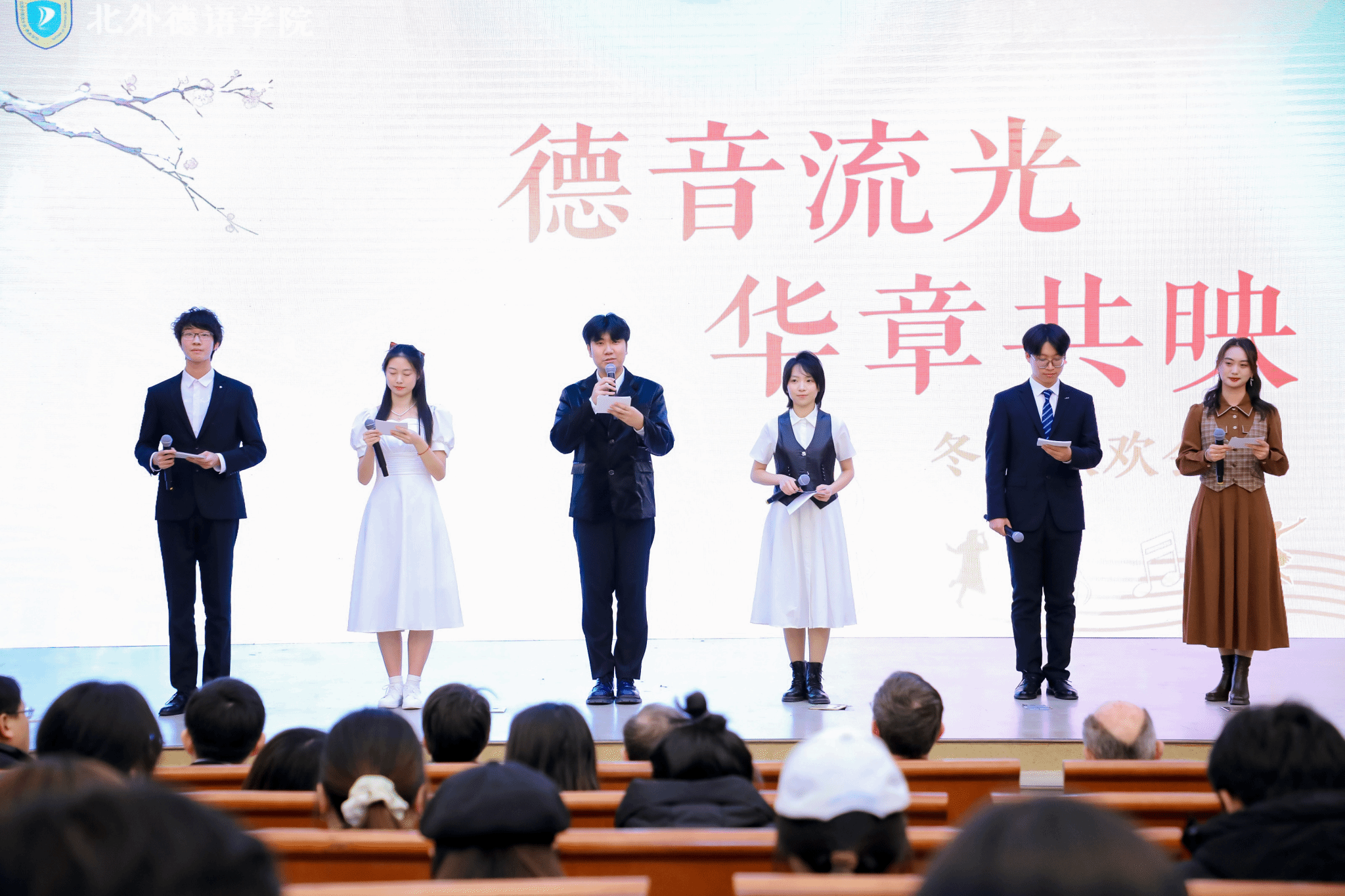 岁月之舟,樯橹轻摇。时光的画笔轻拂,定格了旧岁的欢笑与峥嵘。2024年12月1日晚,必赢76net线路官网“德音流光,华章共映”——2024冬日联欢晚会于阿语楼国会厅隆重举行。本次晚会由必赢76net线路官网必赢76net线路官网主办,必赢76net线路官网中德人文交流研究中心、必赢76net线路官网奥地利研究中心协办,必赢76net线路官网必赢76net线路官网团总支学生会承办,旨在为同学搭建展示自我的平台,在新年将至的美好时刻,领略中国与德语国家文化相得益彰的多样色彩。必赢76net线路官网本科生黄婉茹、田韵熙、李文婷、方霖城、夏昀蓖和高浩童同学共同担任晚会主持人。
