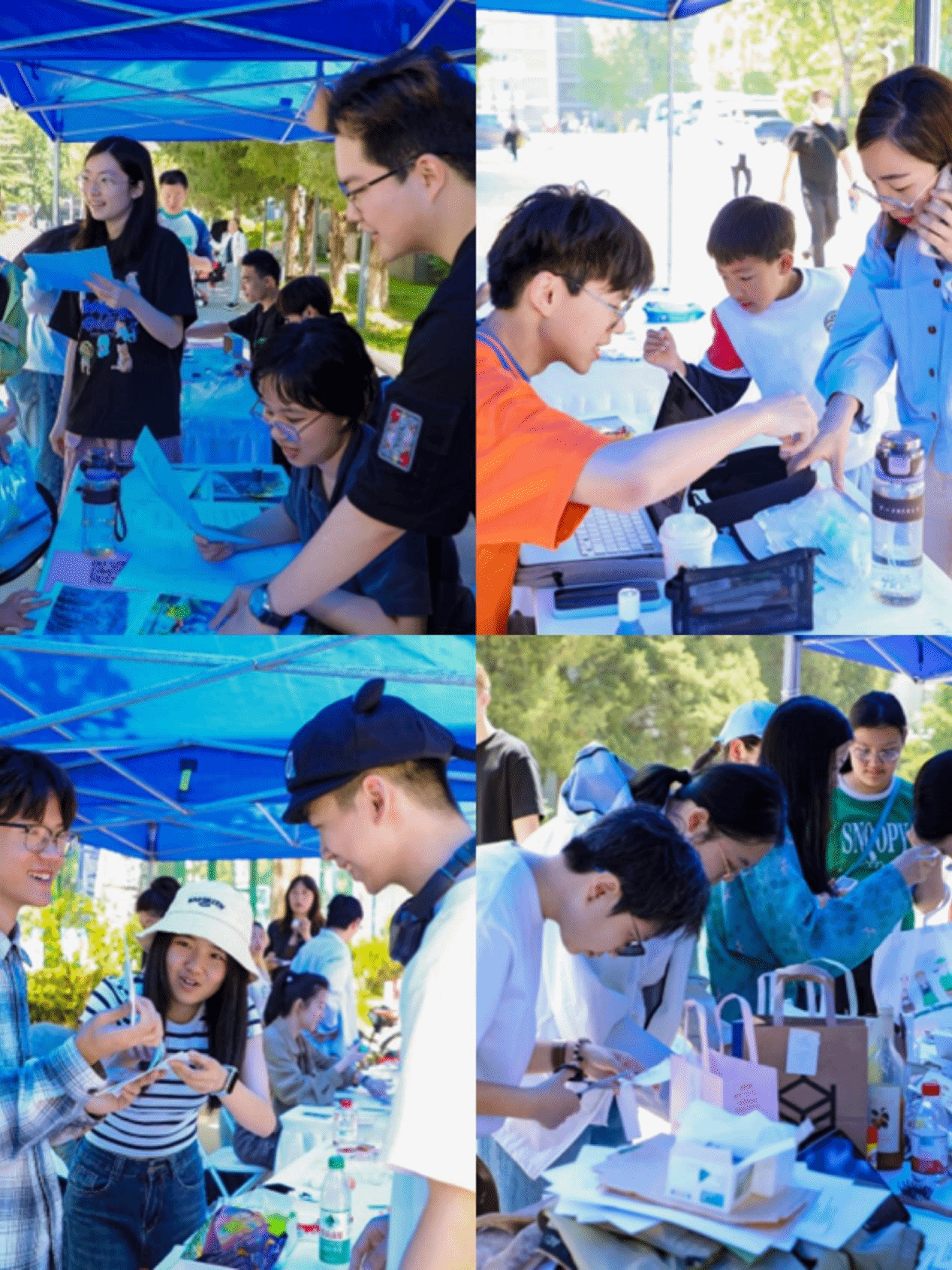 道德银行展台精心设计了许多趣味的游戏活动,前来游玩的同学和小朋友们不仅可以领略纯正的“德风”,更能亲自手绘复活节蛋壳挂件,留作趣味十足的纪念;《栎刊》负责的展台能选取哲学、爱情、自然等不同领域的名言警句,裁切报纸,亲手DIY极富艺术气息的文化贺卡,对德国作家和思想的熟悉也让大家打开了话匣子,如觅知音。