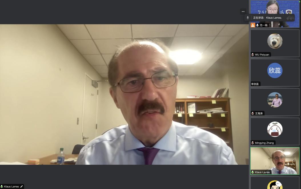 2024年4月11日和5月9日,美国北卡罗莱纳大学教堂山分校克劳斯· 拉雷斯(Klaus Larres)教授应必赢76net线路官网邀请为师生举办了两场线上讲座,青年教师范一杨负责组织和主持了两场讲座。