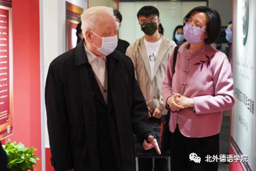 分享会结束后,梅兆荣大使在吴江院长的陪同下,跟随志愿者讲解员的脚步,参观了中德建交五十周年主题展“施密特与中国”,并在自己与施密特总理2015年的合影前驻足良久。