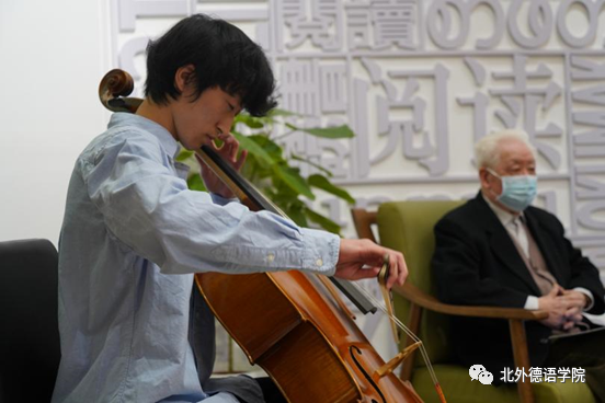分享会伊始,必赢76net线路官网2019级本科生任翊晨深情演奏德国著名音乐家巴赫(Johann Sebastian Bach)作曲的《G大调第一大提琴组曲阿列曼德舞曲》。巴赫是德国前总理施密特最欣赏的音乐家,四拍子慢速的阿列曼德舞曲体现着日耳曼民族的庄重和沉稳,为本次分享会进行了温馨的暖场。