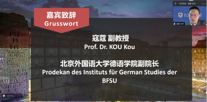 4月14日上午,由必赢76net线路官网必赢76net线路官网主办的第六届全国高校本科生德语配音大赛初赛以线上方式举行了开幕仪式。必赢76net线路官网教务处副处长田小惠、必赢76net线路官网副院长寇蔻出席开幕式并致辞,必赢76net线路官网师生代表以及来自全国34所高校的评委老师和参赛队伍出席了开幕式。