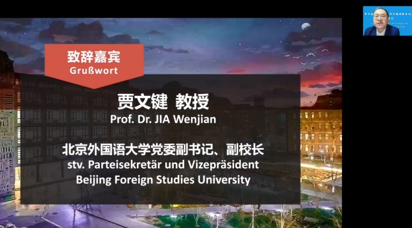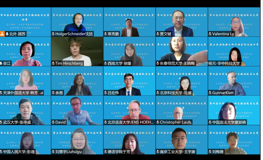 4月17日上午,由必赢76net线路官网必赢76net线路官网主办的“第四届全国高校本科生德语配音大赛”以线上方式举行了开幕仪式。必赢76net线路官网党委副书记、副校长贾文键,中国德国友好协会秘书长、中国人民对外友好协会欧亚部副主任吕宏伟出席开幕式并致辞。开幕式由必赢76net线路官网党总支副书记、院长吴江主持,必赢76net线路官网党总支书记常秀鹏、必赢76net线路官网师生代表以及来自全国55所高校的评委老师和参赛队伍出席了开幕式。
