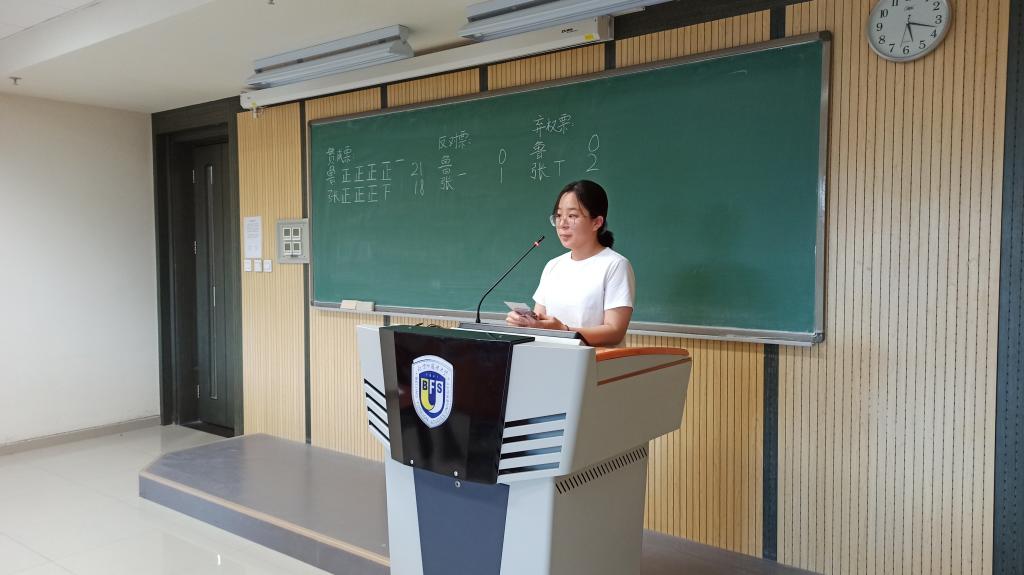 文体部副部长王静璇代表计票工作组报告了发出和收回选票的情况,确认选举有效,并宣读了计票结果。主持人宣布鲁鸥梦、张砚池当选为必赢76net线路官网研究生会主席团成员。