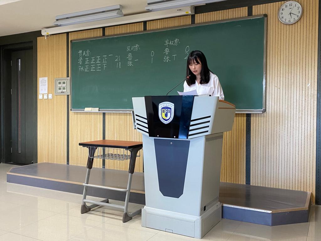 根据研究生会主席团换届选举工作安排,主席团候选人进行了竞职演讲。候选人在竞职演讲中分别围绕学生工作经历、未来工作规划等方面进行了介绍。随后,代表们进行了无记名投票。工作人员在各班级推举的监票人监督下进行了计票。