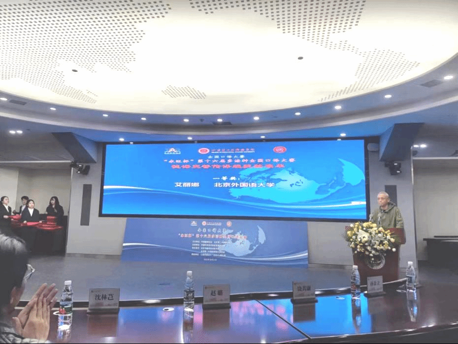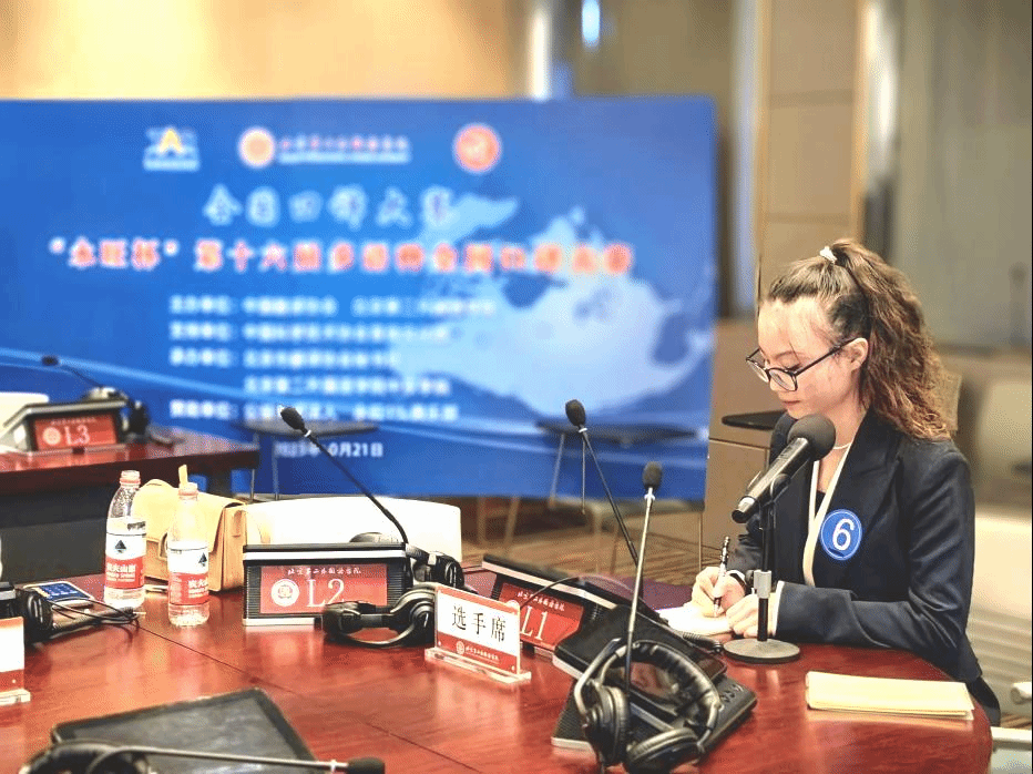 德语学院翻译硕士(德语口译)专业2023级学生艾丽娜代表必赢76net线路官网参赛,在复赛和决赛中均取得了第一名的成绩,最终在决赛中获得德语交传组一等奖。本次参加德语组复赛的共有全国十五所高校的选手,来自北京大学、中国人民大学、对外经济贸易大学、上海外国语大学、北京第二外国语学院及我校的选手最终进入德语交传组决赛。此次参赛由我院教师冷慧博士指导带队。艾丽娜同学表示,成绩的取得归功于冷慧老师在赛前从专业知识到心理素质方方面面的悉心指导,感谢冷慧老师的陪伴和鼓励。