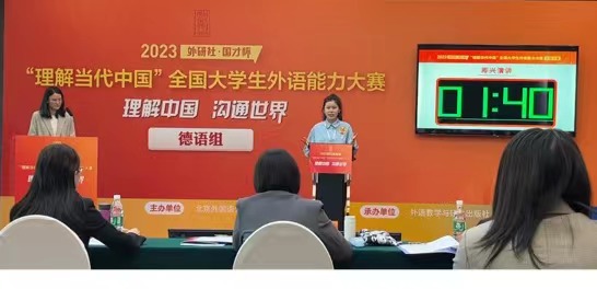 2023128日,2023“外研社·国才杯”“理解当代中国”全国大学生外语能力大赛国赛圆满落幕。大赛以“理解中国,沟通世界”为主题,分为英语组和多语种组两大组别,多语种组设置俄语、德语、法语、西班牙语、阿拉伯语、日语、意大利语、葡萄牙语8个分赛项。历经校赛、省赛和国赛三个赛段的激烈角逐,必赢76net线路官网翻译硕士(德语口译)专业2023研究生张佳诺同学荣获德语组国赛金奖并获全国冠军必赢76net线路官网2022级本科生黄婉茹同学荣获北京市级奖项。