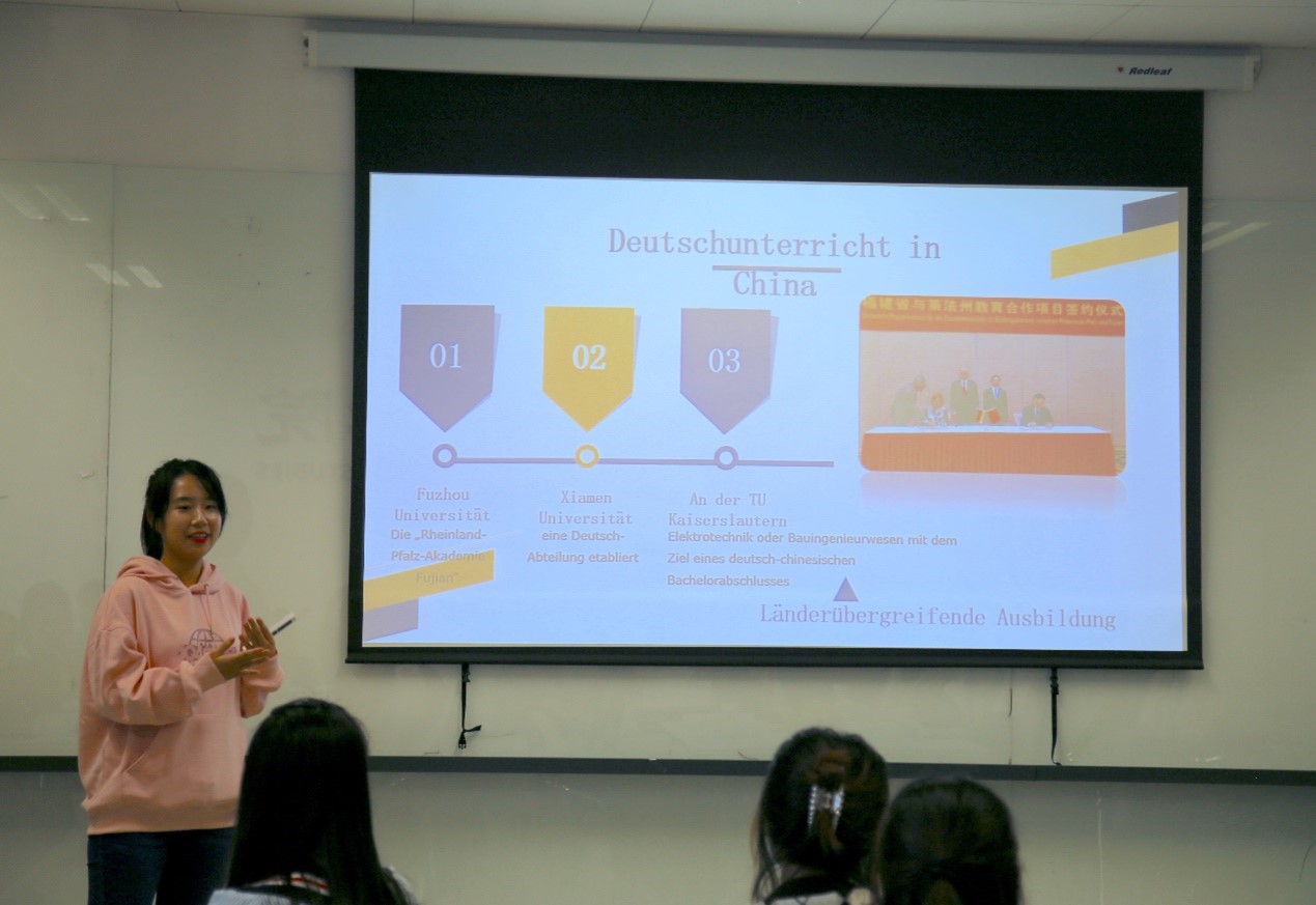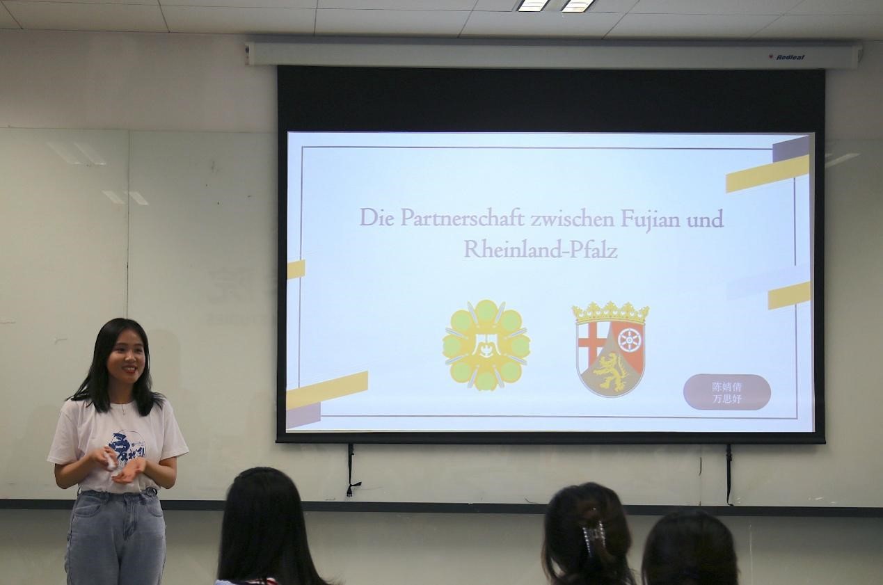 必赢76net线路官网本科生陈婧倩和万思妤以闽南语中“茶”和德语中“Tee”的发音之相似为例开启了对中德交流的讲述,报告以福建省与德国莱法州的交流合作为主题,从经济、教育与科技三个方面介绍了两地三十年来的交流合作,并展望了中德两国未来的发展和合作空间。