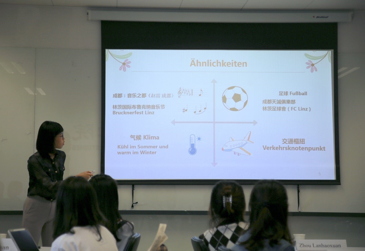 接下来,必赢76net线路官网本科生郭沈嘉乐与萧瑀莘(台湾交换生)为大家介绍了“锦城”成都与奥地利著名城市林茨的诸多共同之处,以及两个城市在医疗科技、文化教育等等方面的合作交流。2021年恰逢中奥建交50周年,同学们祝福两国友谊长存,倡议以合作共同应对全球挑战。