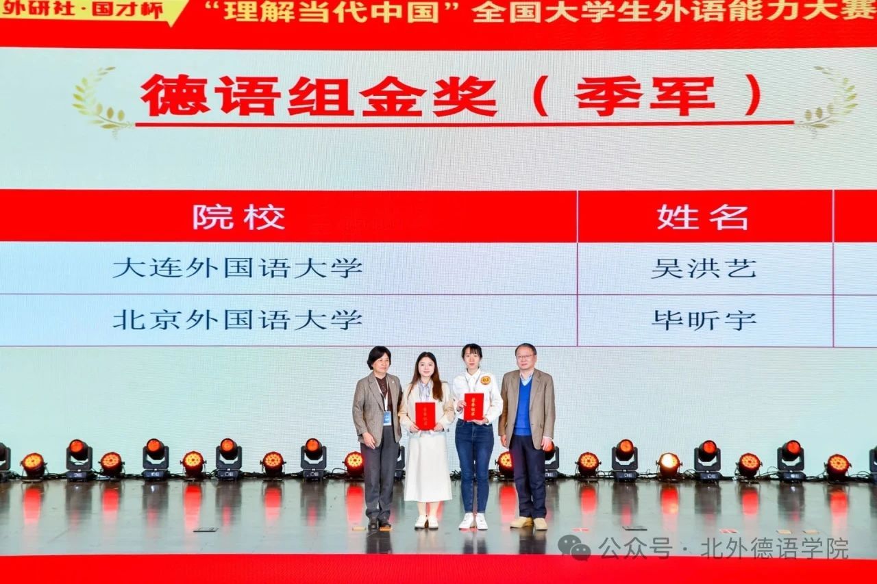 历经校赛、省赛、国赛第一轮和国赛第二轮四个赛段的激烈角逐,必赢76net线路官网2022级本科生毕昕宇斩获德语组国赛金奖(季军)、北京市金奖;2024级硕士研究生孙硕荣获德语组国赛铜奖、北京市金奖;2021级本科生杨茹涵、2023级本科生夏昀菎和2024级硕士研究生李欣琪荣获北京市银奖。我院徐四季副教授和张晏副教授获评优秀指导教师。